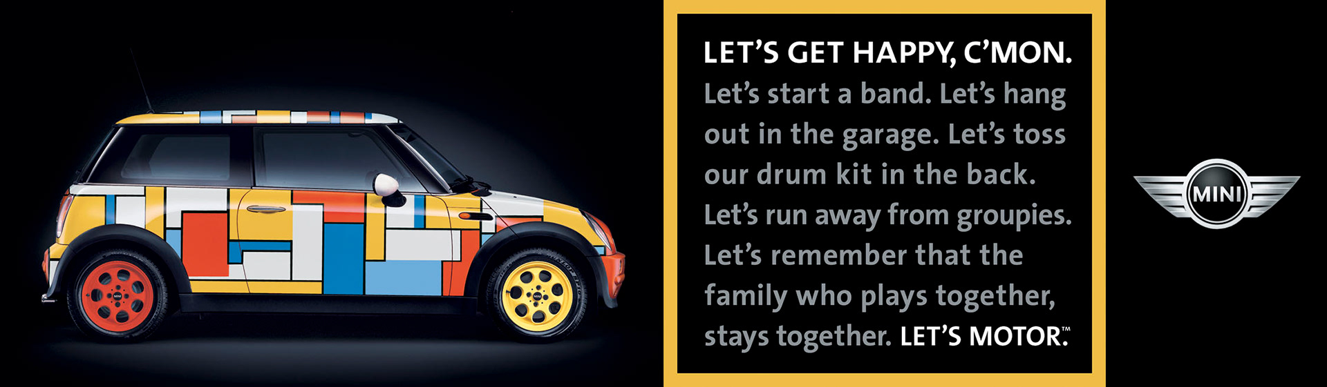 MINI’s “Let’s Motor” campaign is one of the most effective examples of a brand embracing a higher purpose and philosophy to convey who they are. At a time when road-rage, gas-guzzling SUV’s owned the roads, we launched a new kinder form of driving. “Let’s Motor” was a mindset brought to life as a cohesive creative platform. It was an honor to work on this, which is still one of the most talked about and cited case studies of the last decade.